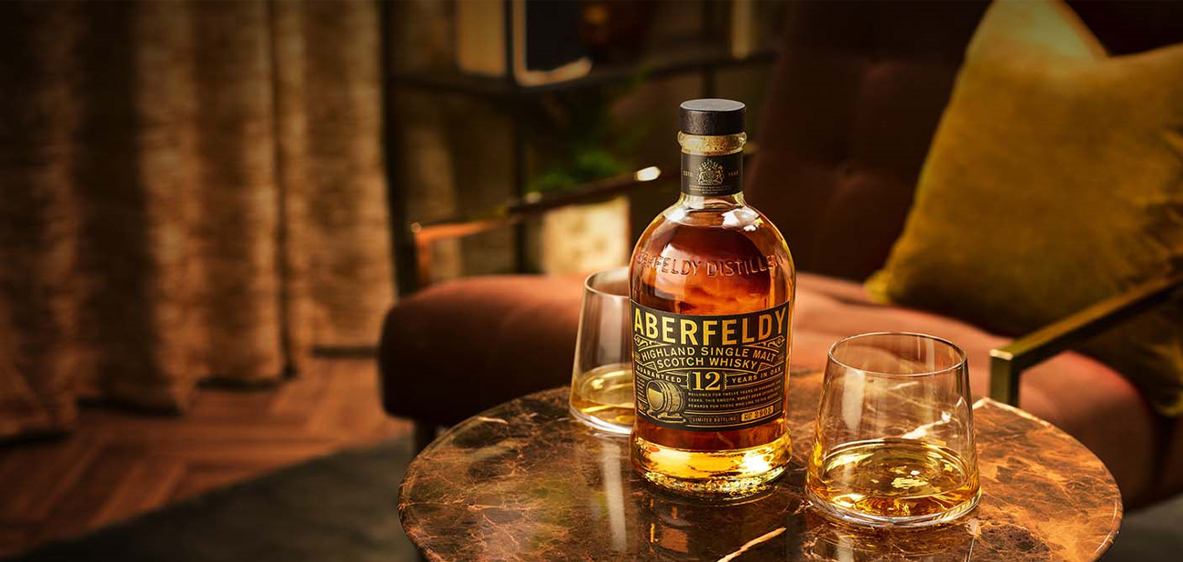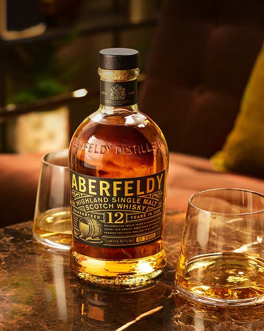 Aberfeldy 12 Year Old single malt scotch whisky is a honeyed dram with notes of fruit, spices, lots of vanilla and just a hint of smoke.