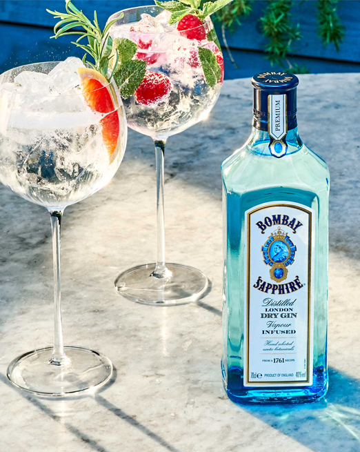 BOMBAY SAPPHIRE Gin revolutionized the gin category in the 1980s with its vapour-infusion process and the inclusion of ten botanicals in the liquid. The name itself drew upon Indian heritage and the famous ‘Star of Bombay,’ a 182-carat sapphire – arguably the finest ever found.