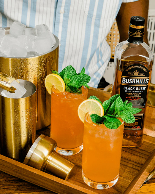 Bushmills Black Bush Irish Whiskey combines an exceptionally high amount of malt whiskey married with a lighter grain whiskey, and then matured in former Oloroso Sherry and Bourbon casks. This unique recipe means Black Bush has rich, fruity notes and a deep intense character, balanced by an incredibly unique smoothness. It’s best enjoyed neat, over ice, or in classic cocktails. The most seasoned of Irish whiskey drinkers know, you can’t beat Black Bush.