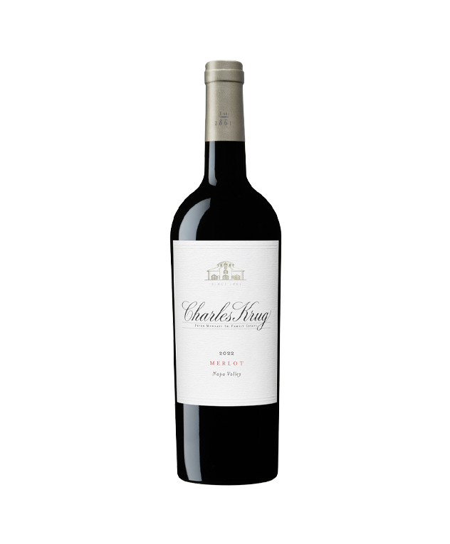 Our 2022 Napa Valley Merlot is selected from our estates in St. Helena and Yountville. The grapes are night picked, destemmed and cold soaked to extract color and aromas. The wine opens with expressive aromas of hibiscus tea, cranberry, cherry, red currant, cedar, plum skin, brown butter, and whole cardamom. It is so and buttery with a lush entry. Notes of vanilla, baked red fruit, cocao nibs, and red currant lead to a medium long finish with cherry and spicy oak.
