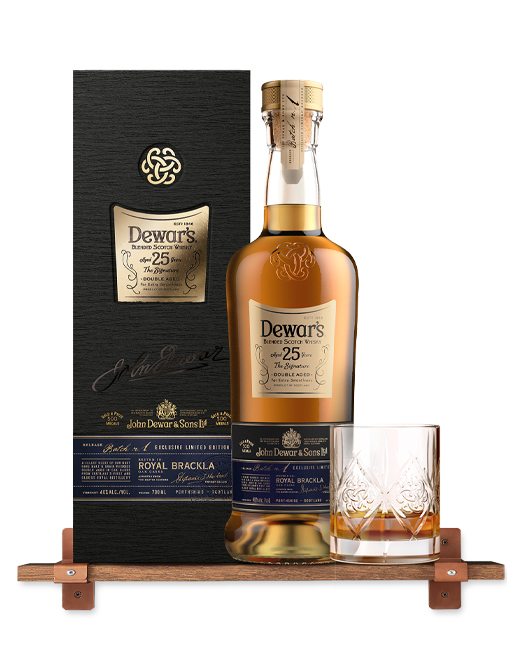 Dewar’s The Signature 25 Year Old Blended Scotch Whisky is one of Dewar’s oldest and rarest whiskies with a minimum of 25 years maturing in the finest oak casks, blended together and finished in Royal Brackla single malt casks. A celebration of the signature style of each of Dewar’s master blenders from the pioneer of double ageing; A.J. Cameron, to the current Master Blender Stephanie Macleod. Dewar’s 25 delivers notes of heather honey, cream and nuts; a refined oak cask whisky that bestows a sweeter, more velvety note on the long finish.