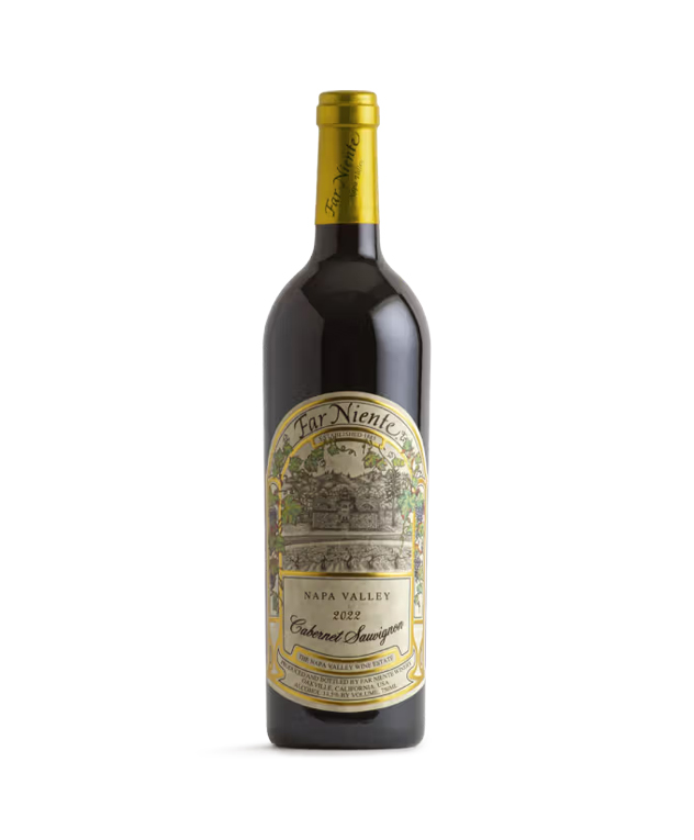 The 2022 Far Niente Napa Valley Cabernet Sauvignon opens with an elegant perfume of mixed berries, baking spice, dried lavender and thyme open onto a full palate layered with expansive mixed berry, black tea, toasted oak and spice flavors. Focused and fresh, fine-grained tannins support the wine throughout, while the finish is silky, long and lifted.