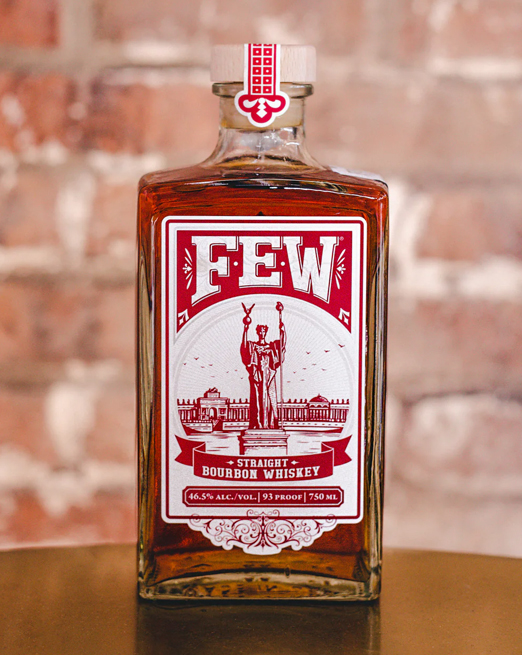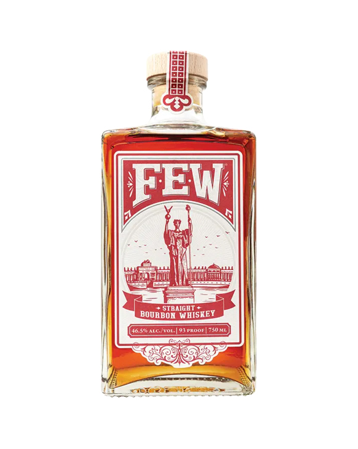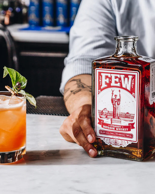 FEW Bourbon, distilled through timeless liquor-making techniques, utilizes a three-grain recipe that infuses generations of Southern tradition with the spiciness of northern rye and a touch of malt for smoothness. FEW is hand-crafted through a small-batch process in charred oak barrels to age its bourbon whiskey.