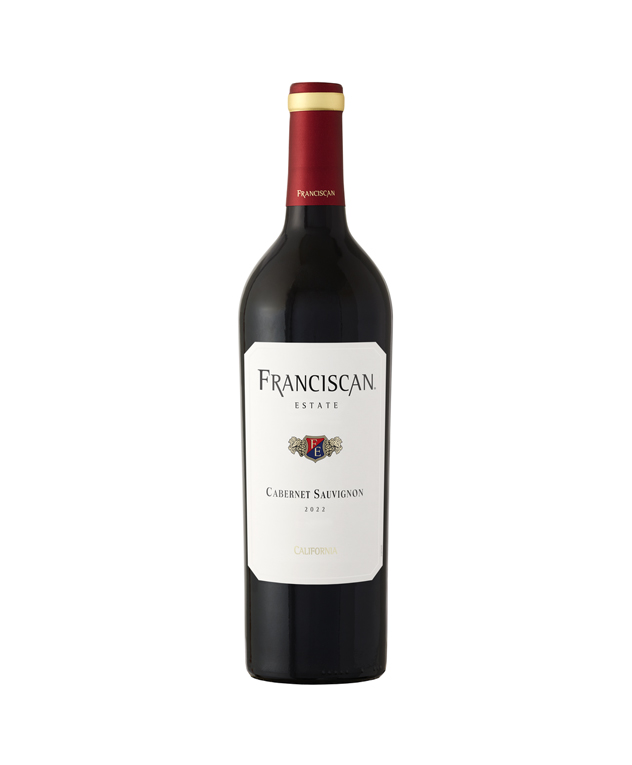 Franciscan Estate 2022 Cabernet Sauvignon is a full-bodied wine grown in California. A deep ruby color shows in the glass with aromas of blackberry and toasted coconut. The mouthfeel is silken with layers of black cherry and dark raspberries with ribbons of caramel throughout. On the finish, notes of dark berry are accented with hints of mocha.