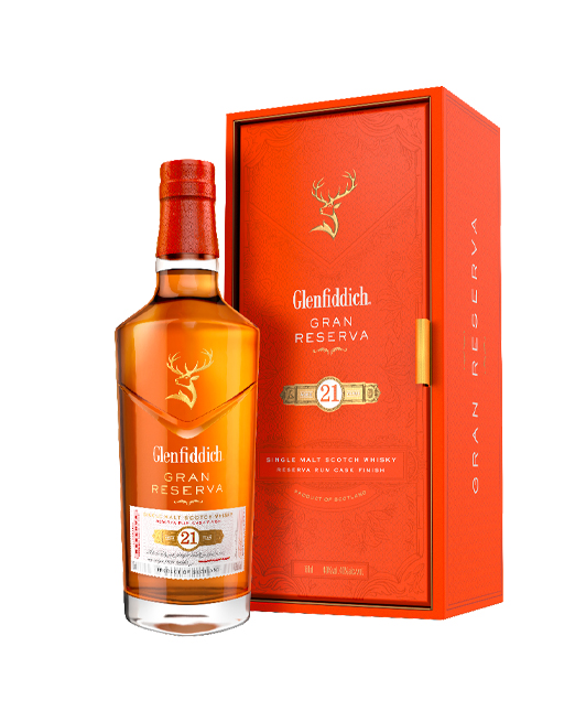 Glenfiddich Gran Reserva 21 Year Old single malt Scotch whisky is an exquisite, traditional Speyside whisky aged for 21 years, our innovative rum cask finish adds extra sweet and exotic notes, creating a rich, decadent, and luxurious single malt. Our Reserva Rum Cask Finish is an exquisite, traditional Speyside whisky, rich and ripe, with exotic notes of ginger, fig, lime, and a vibrant spicy toffee warmth. Matured for 21 years in oak barrels and finished in hand-selected Caribbean rum casks for up to four months. Best enjoyed neat, on the rocks, with a splash of water, or with club soda to expand the flavor.