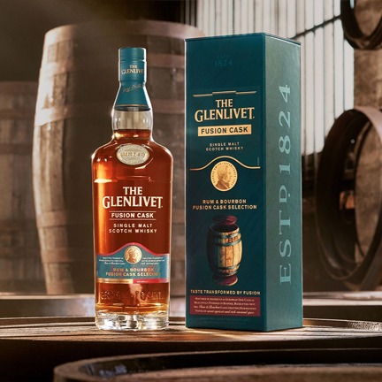The Glenlivet Rum & Bourbon Fusion Cask Selection Single Malt is an innovative creation from The Glenlivet Distillery, known for its legacy in crafting exceptional Scotch whisky. This unique single malt is selectively finished in bespoke, recrafted first-fill rum and bourbon casks, offering a distinctive and luxurious tasting experience.