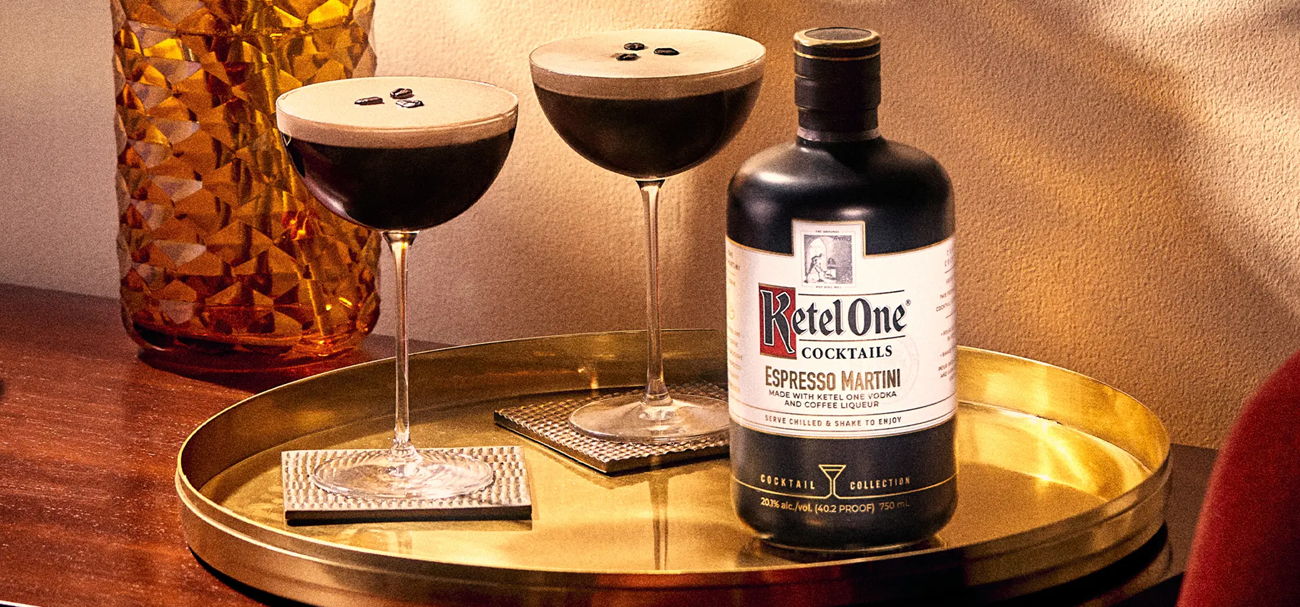 Bring all the classics together with the Ketel One Espresso Martini. This expertly crafted cocktail brings the smooth taste of Ketel One Vodka to the rich and velvety flavors of premium coffee liqueur. Please refrigerate product upon purchasing. To serve, just open the bottle, pour into a cocktail shaker with ice, hard shake, and strain into a coupe or Nick & Nora glass. Garnish with three coffee beans.