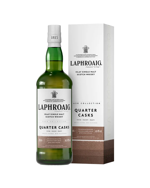 Laphroaig Quarter Cask is twice aged to amplify deep peat and add a surprising sweetness. Contact with the wood of smaller quarter-sized casks makes it our most lively expression.