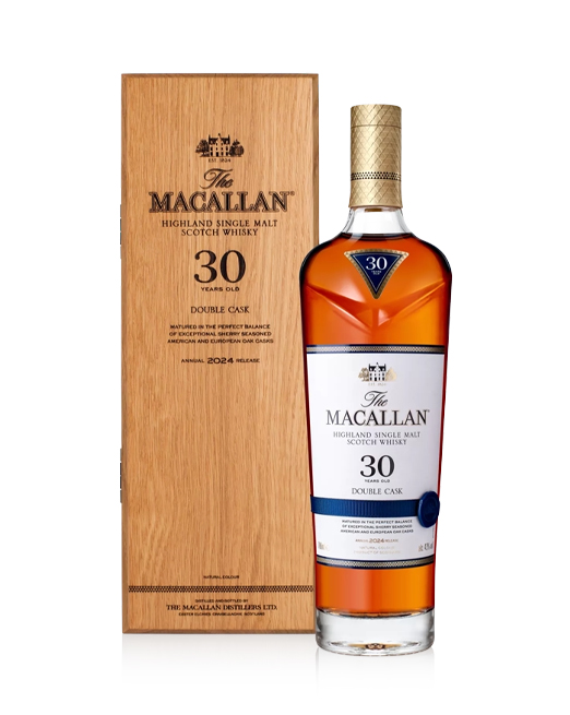 The Macallan Double Cask 30 Years Old, aged for thirty years in a harmonious union of American and European oak sherry seasoned casks, to create a unique taste and character.