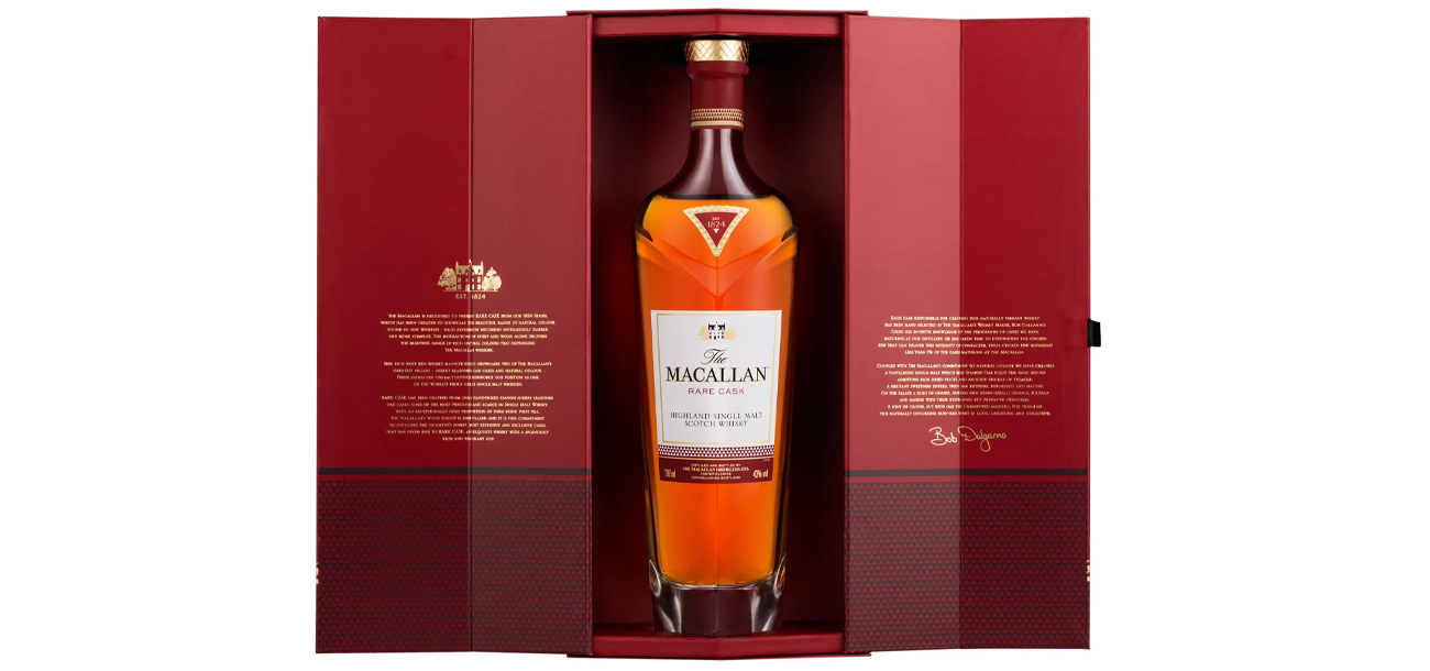 Rare Cask’s rich mahogany-red single malt whisky showcases two of The Macallan’s greatest and most defining strengths – sherry seasoned oak casks and natural colour.