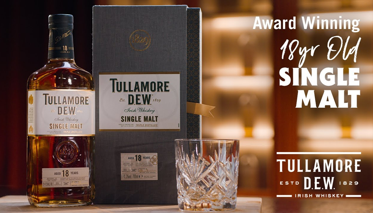 Our award winning Tullamore D.E.W. 18 Year Old Single Malt Aged Irish whiskey brings smooth and mellow cinnamon, apple and vanilla oak notes.
